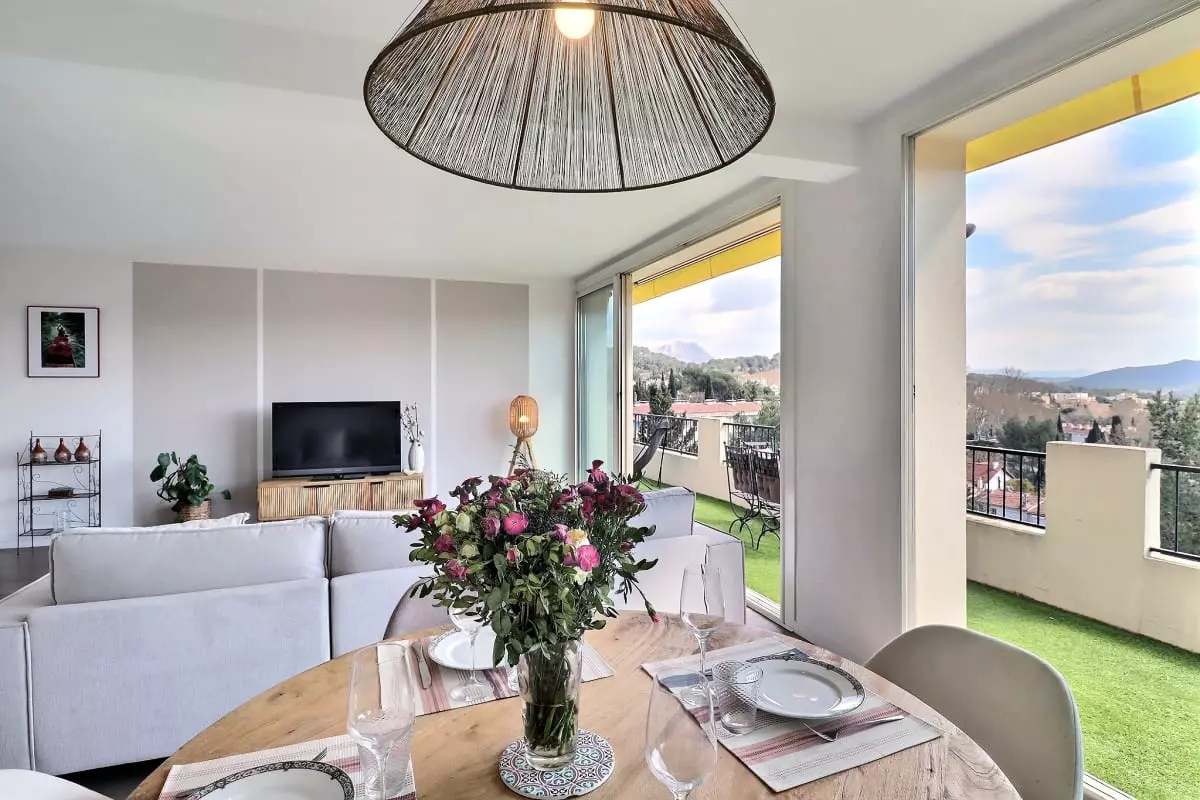 Perched on the 3rd floor of a building without an elevator, this bright apartment invites you to experience Aix-en-Provence in a rare balance between city life, comfort, and Provençal charm. Just a 15-minute walk from the city center, you can easily reach the lively streets, terraces, markets, and iconic spots of Aix, before returning to the tranquility of a light-filled space, open to the city's rooftops and the majestic silhouette of the Sainte-Victoire mountain.