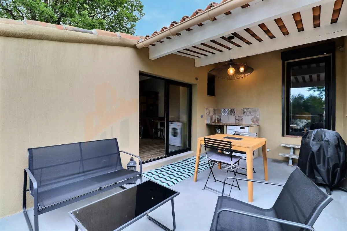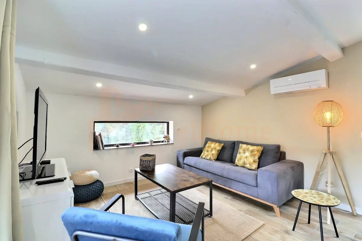 This magnificent apartment, fully renovated and tastefully decorated, welcomes you to a private estate offering complete privacy and breathtaking views of the majestic Sainte-Victoire mountain. Ideal for a romantic stay, it combines Provençal style with convenient proximity to the picturesque village of Trets.