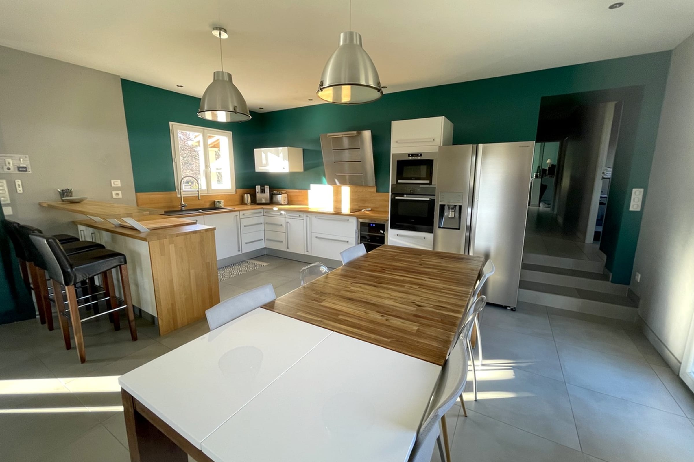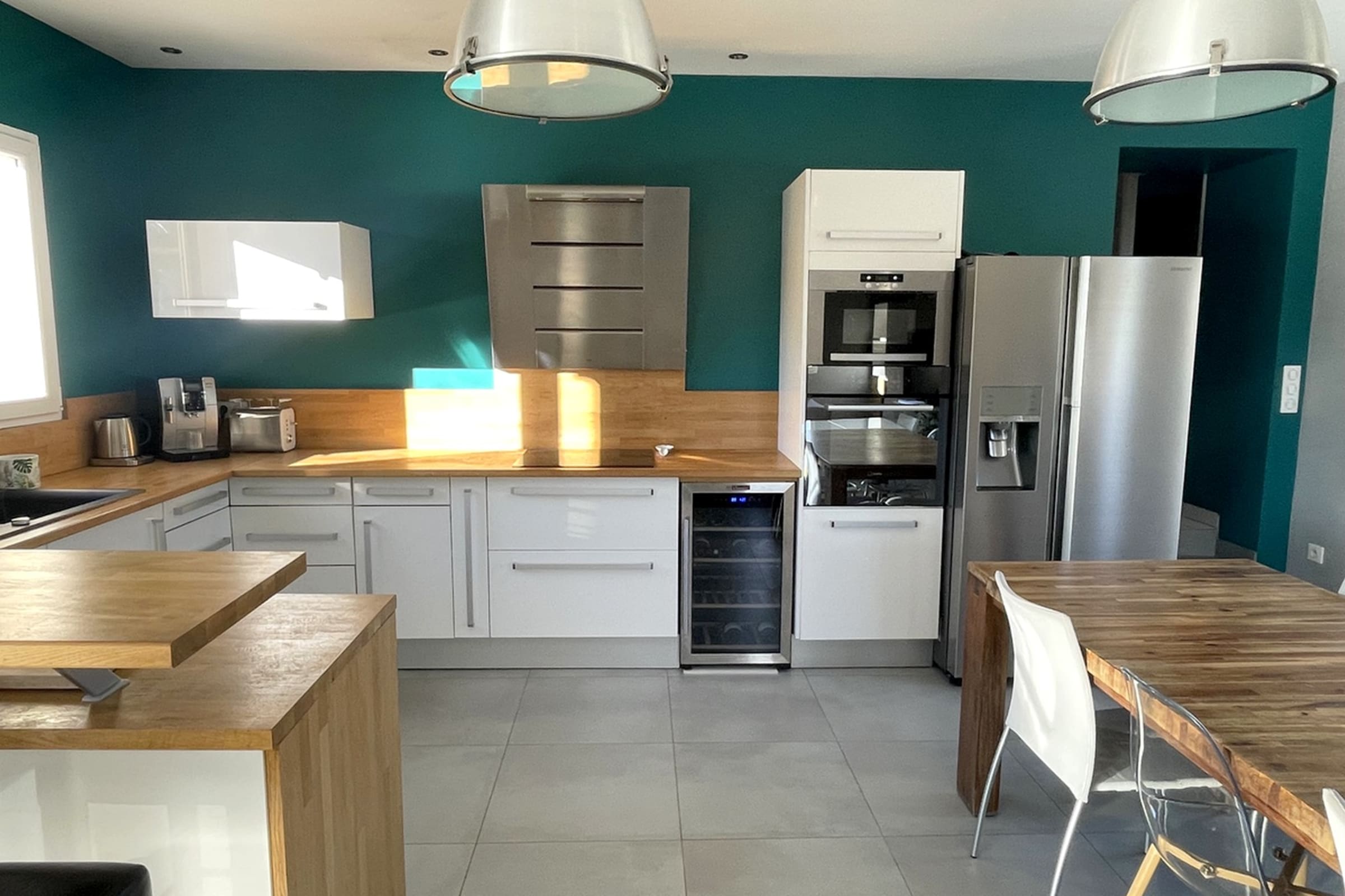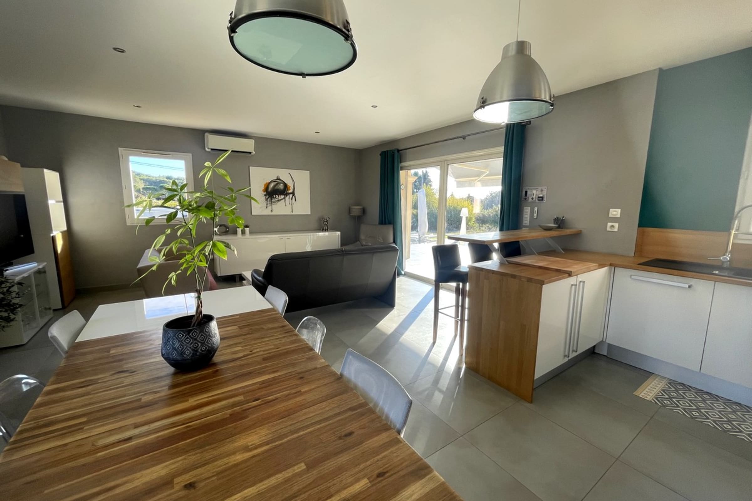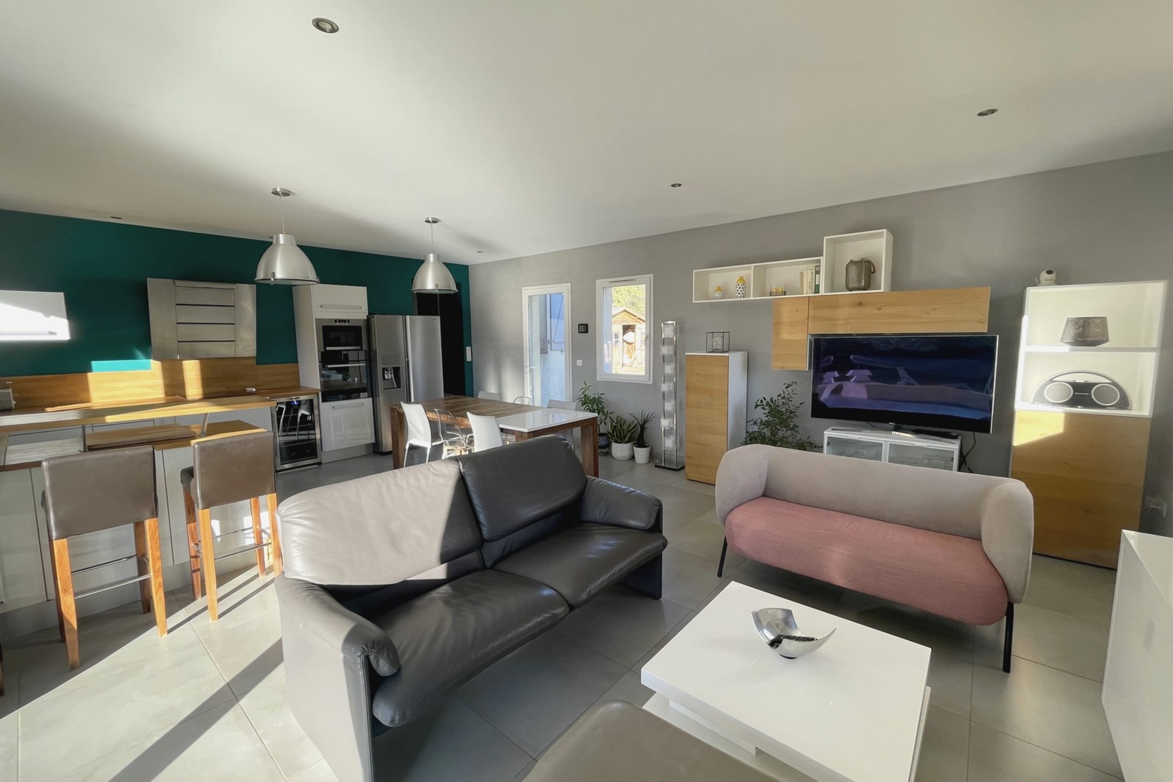 With its large living room opening onto the terrace and the garden, the house enjoys a beautiful atmosphere where you feel good on vacation.