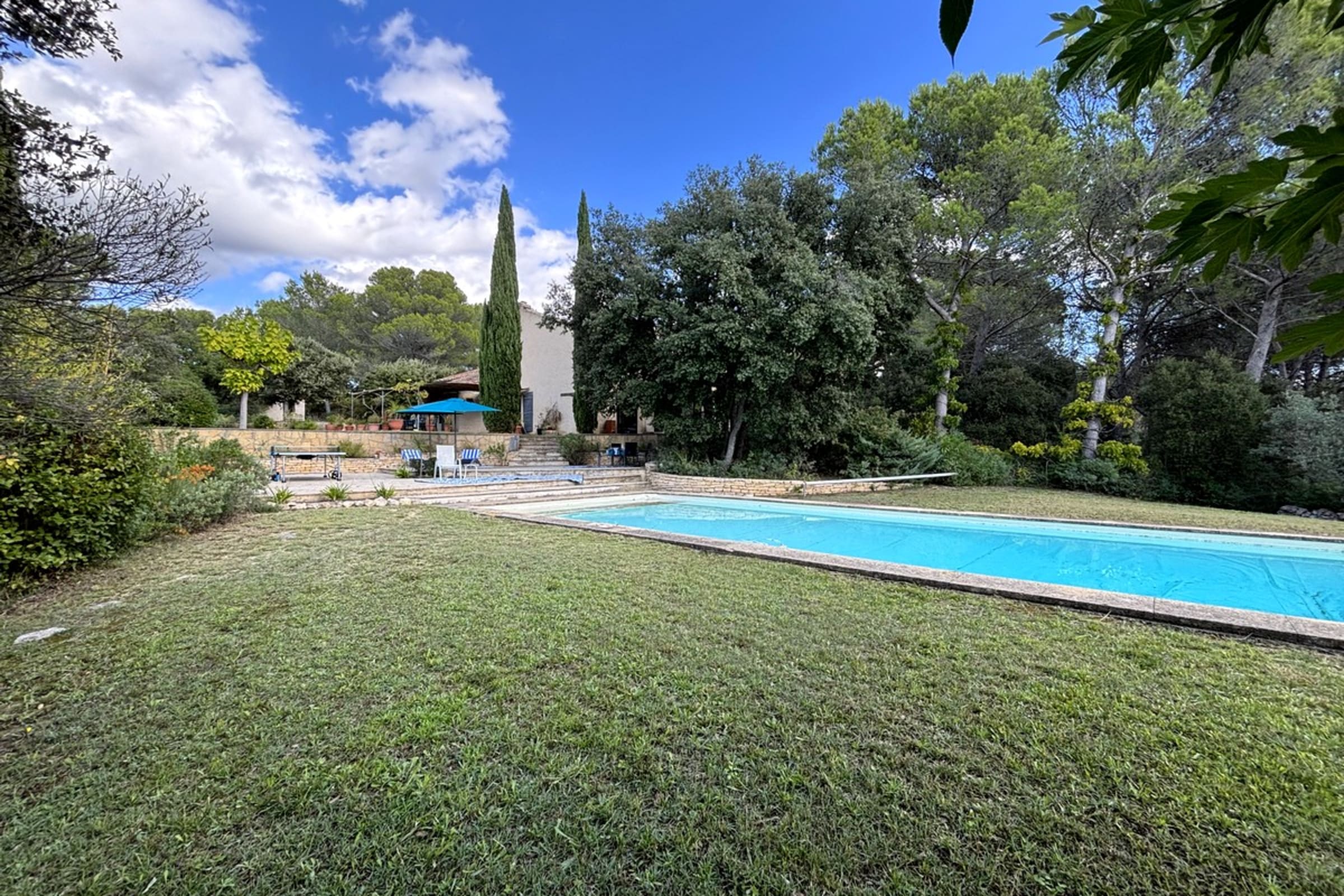 * Large terrace around the pool with ping-pong table, deckchairs, parasols, etc.