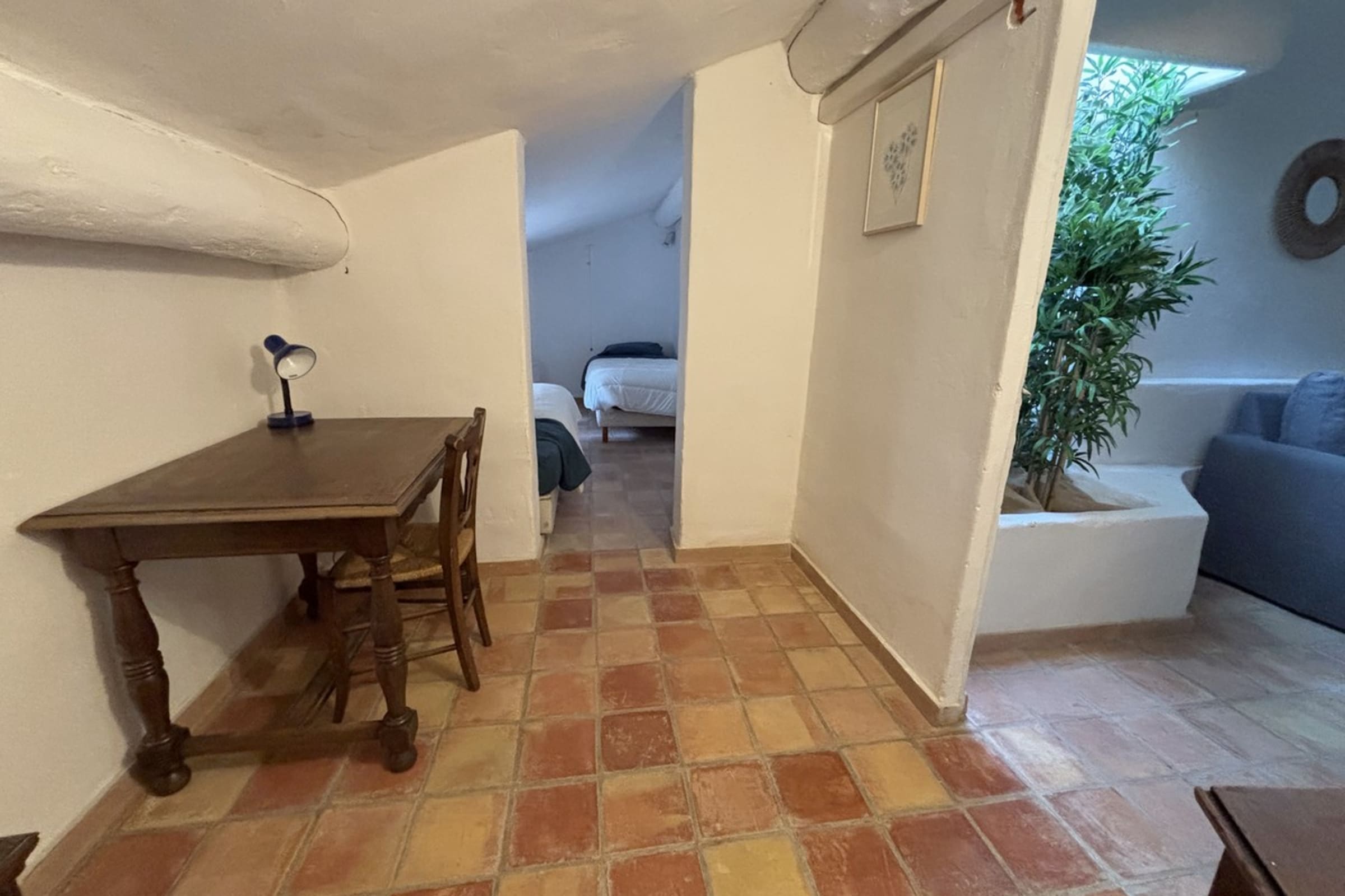 * Relaxation area with sofa leading to the bedrooms.