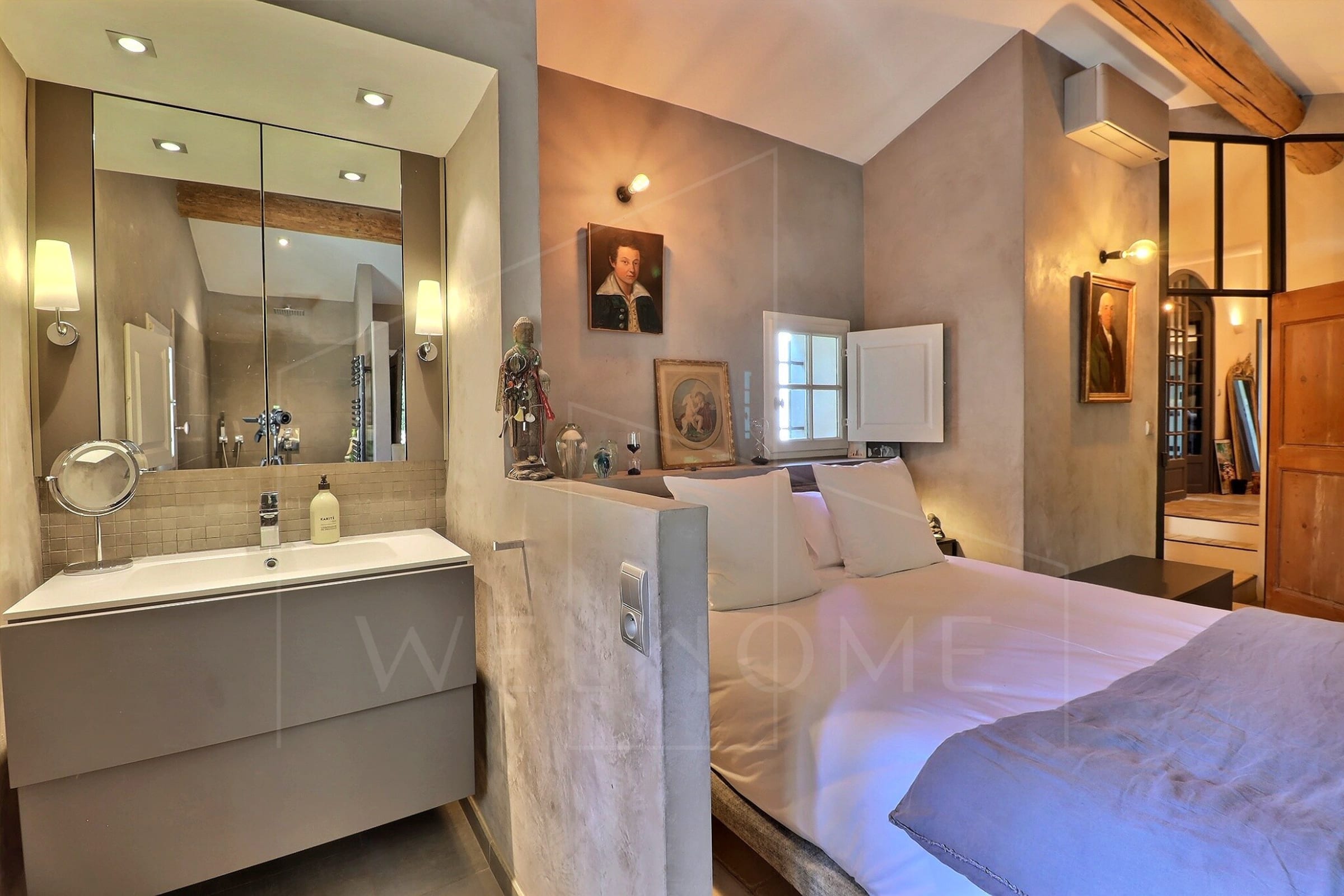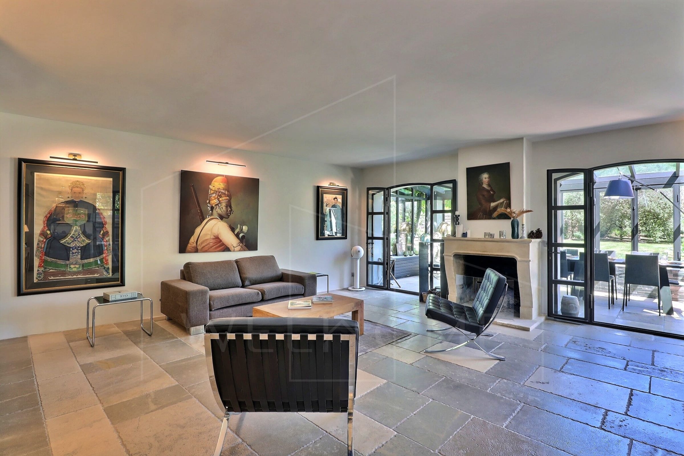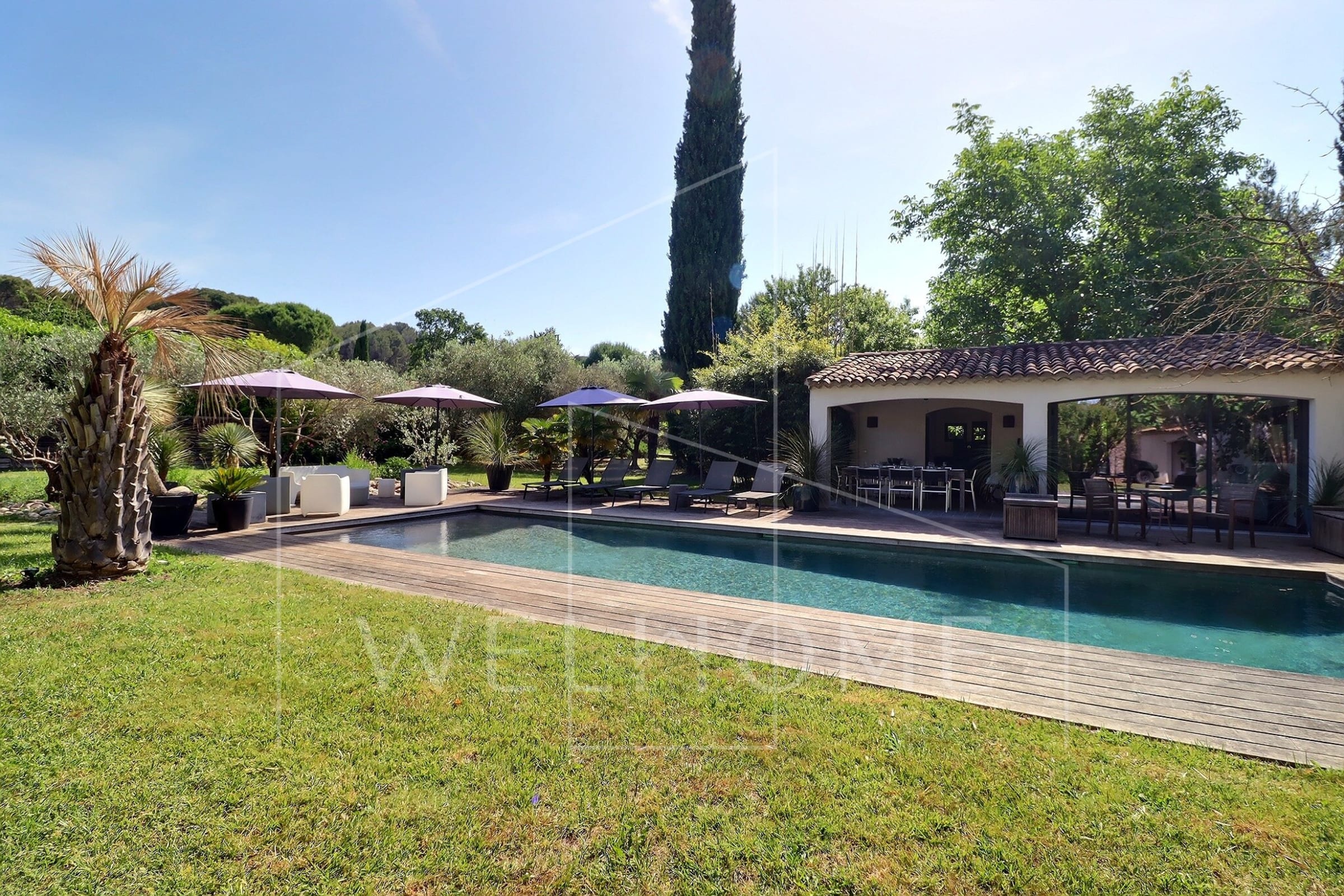 The lush garden—an oasis of Mediterranean plantings—features a beautiful wood-decked swimming pool, a furnished pool house, and several shaded lounge areas designed for ultimate relaxation. Every outdoor space has been crafted to immerse you in nature, refinement, and the effortless Provençal “joie de vivre.”