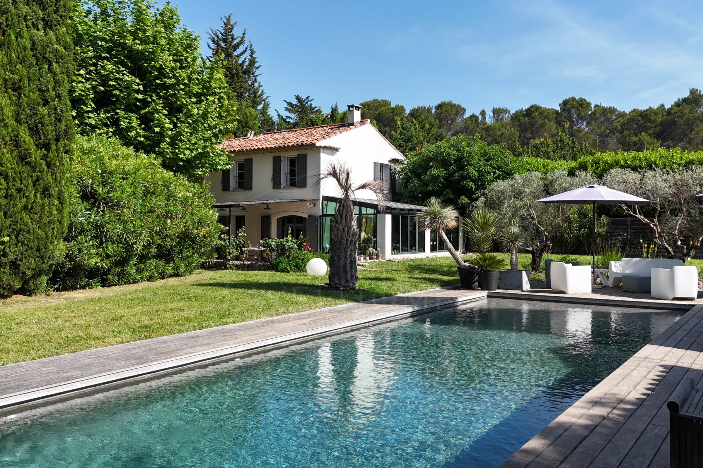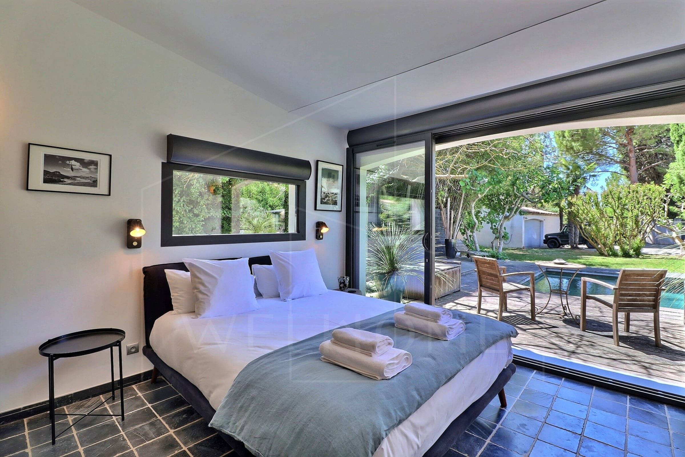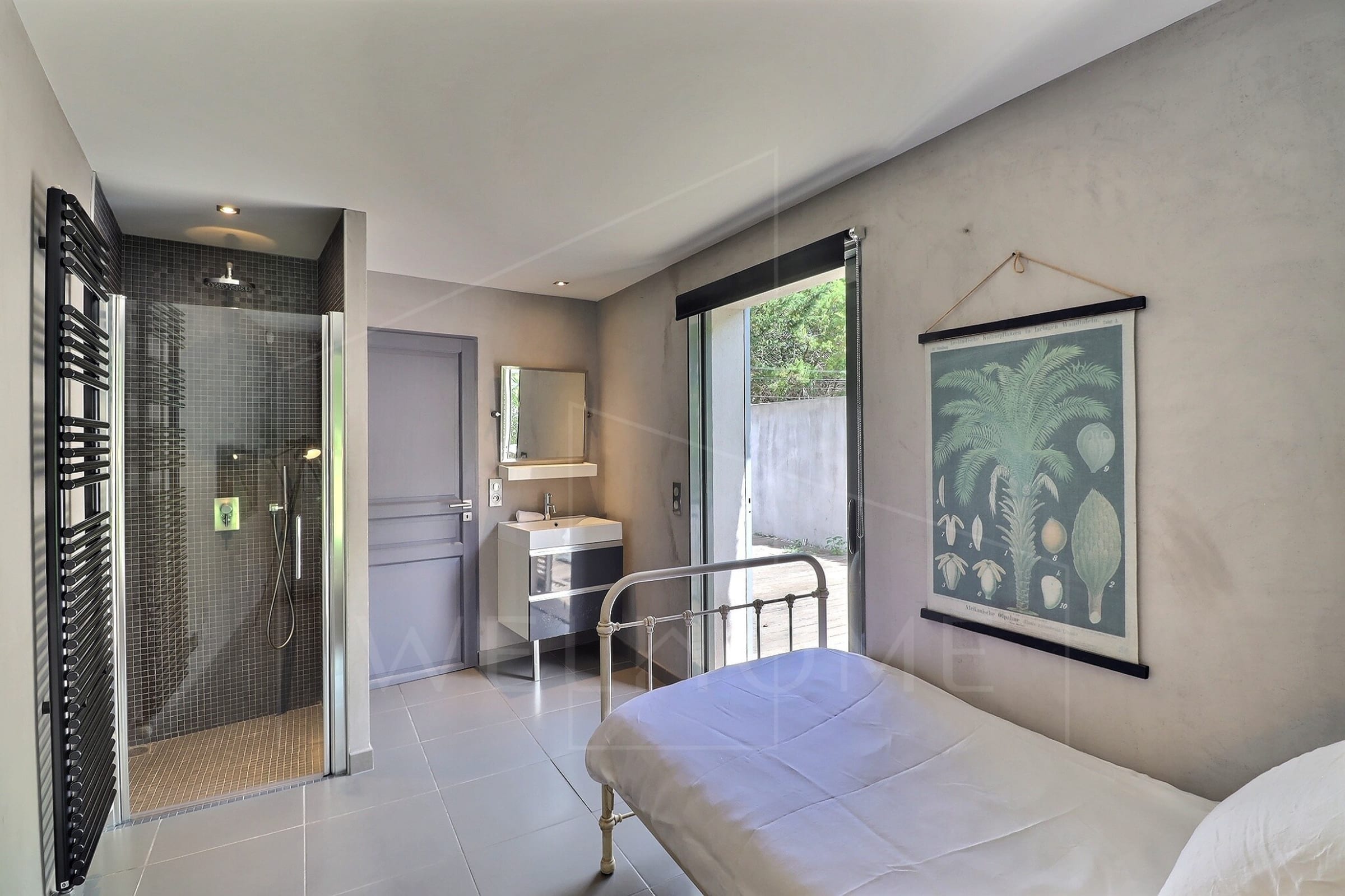 The lush garden—an oasis of Mediterranean plantings—features a beautiful wood-decked swimming pool, a furnished pool house, and several shaded lounge areas designed for ultimate relaxation. Every outdoor space has been crafted to immerse you in nature, refinement, and the effortless Provençal “joie de vivre.”